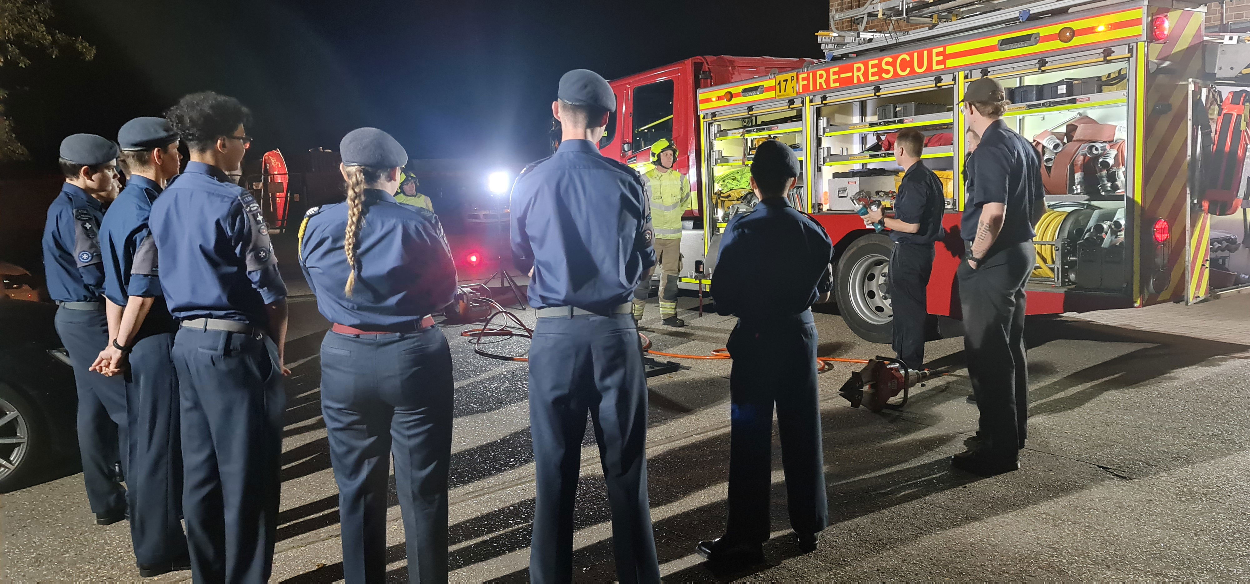 The Older Cadets spent the night at the local fire brigade and there was a lot of laughter and fun. Cadets tried on gear, saw the equipment and how it works. The highlight was making the "Blue's and Two's" work and handling the hoses. For more pictures look at the gallery.